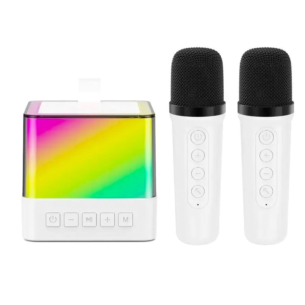 Блютуз колонка K18 – портативная колонка с 2-мя беспроводными микрофонами. Воспроизводит по Bluetooth, с USB флешек, карт памяти microSD, с AUX входа, имеет яркую подсветку. Мощность 5 Вт.