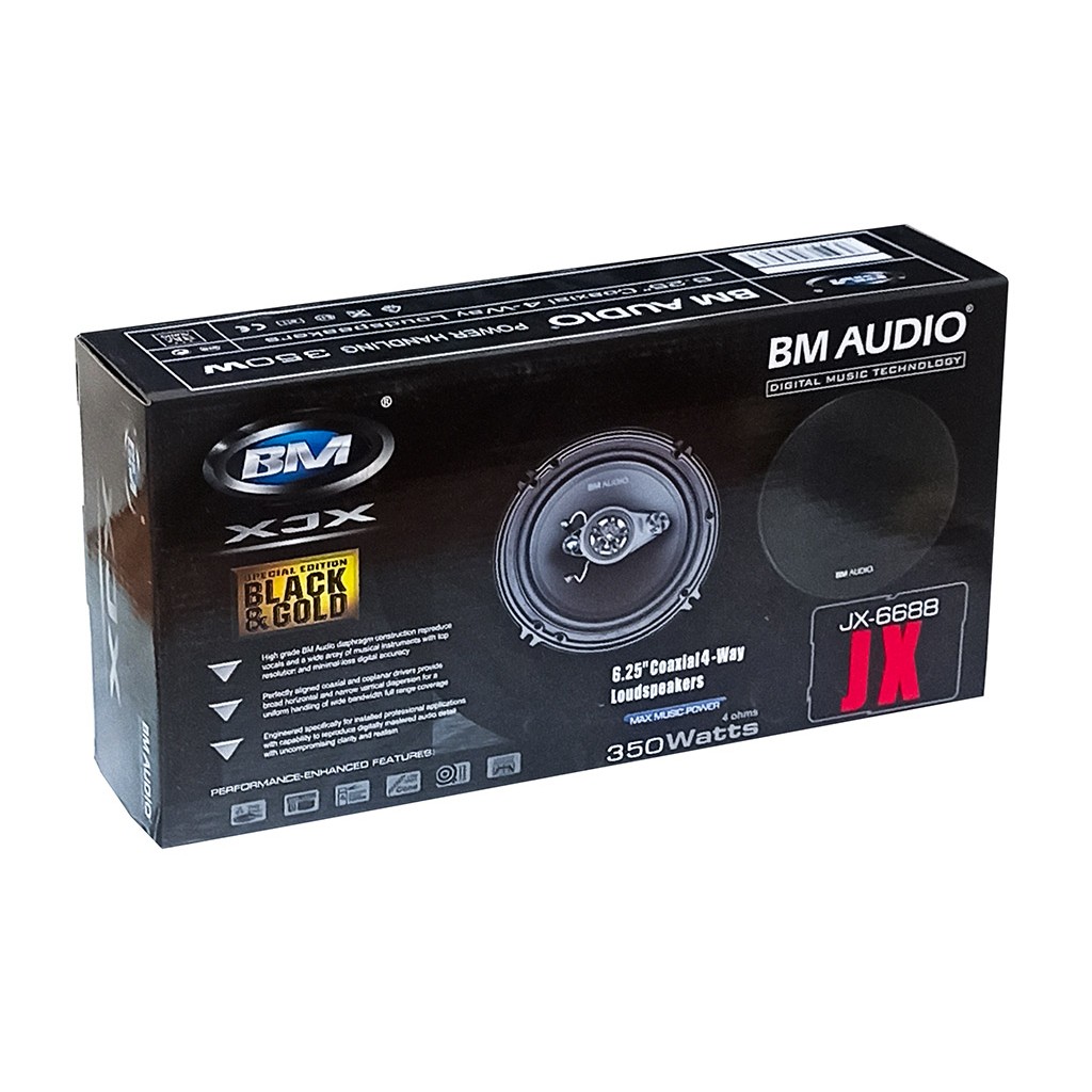 Динамики в авто BM Audio JX-6688 - коаксиальные четырехполосные динамики в машину размером 6,25 дюймов (158мм). Максимальная подводимая мощность 350 Вт, чувствительность 92dB, диапазон частот 40-24 000 Гц. В комплекте 2 динамика с сетками.