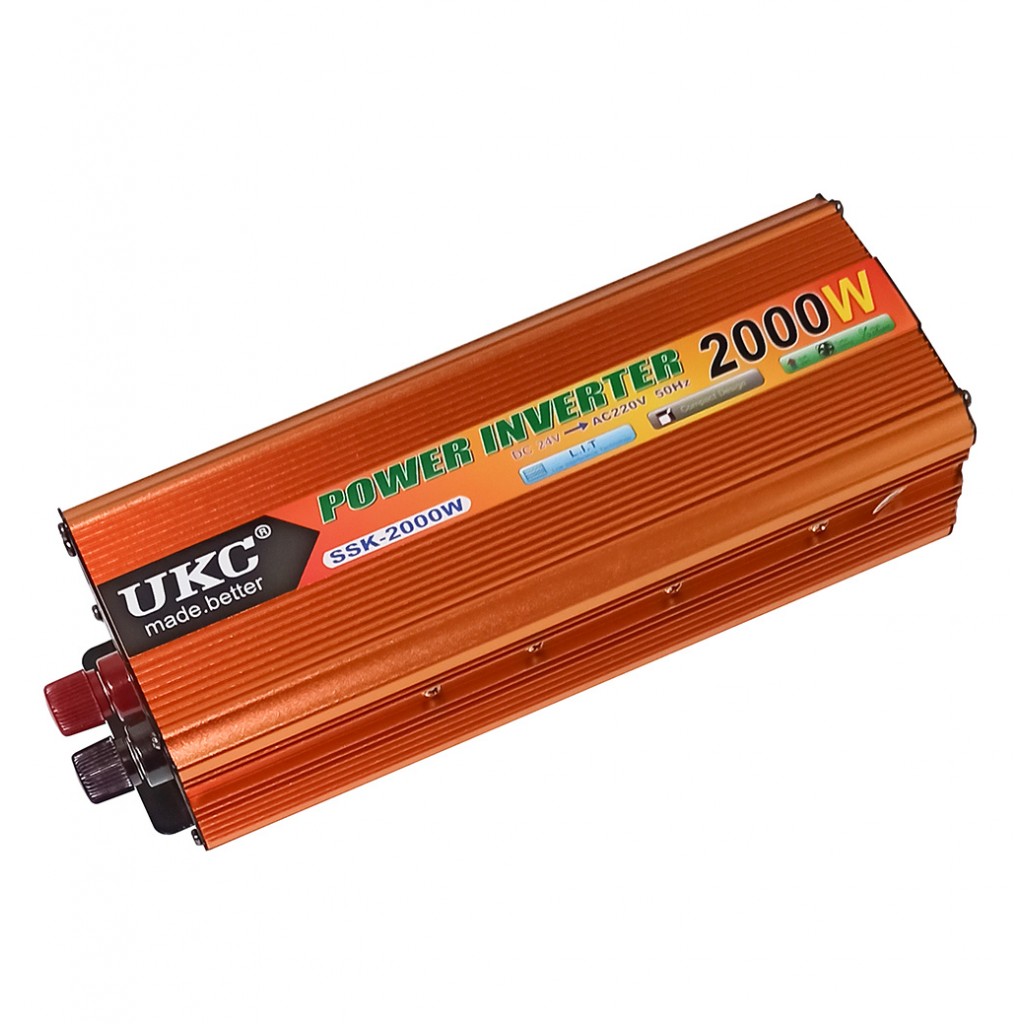 Инвертор UKC SSK-2000W — это мощный преобразователь напряжения, предназначенный для получения переменного тока 220 В от источников постоянного тока 24 В (аккумуляторов, бортовой сети грузового транспорта или автономных энергосистем).