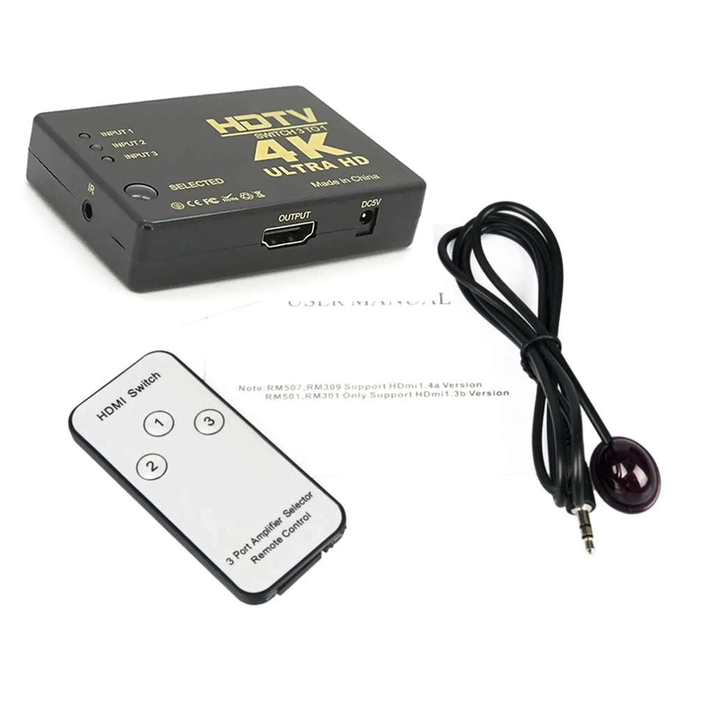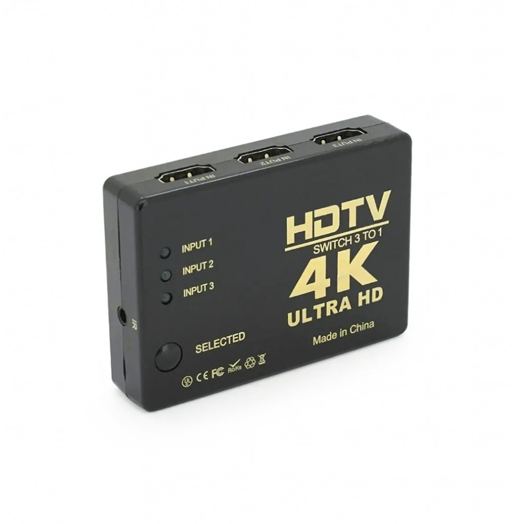 Коммутатор hdmi Switch 3T01 – переключатель hdmi входов на 3 устройства, предназначенный для передачи цифровых сигналов видео и аудио к одному приемнику (монитору, телевизору).