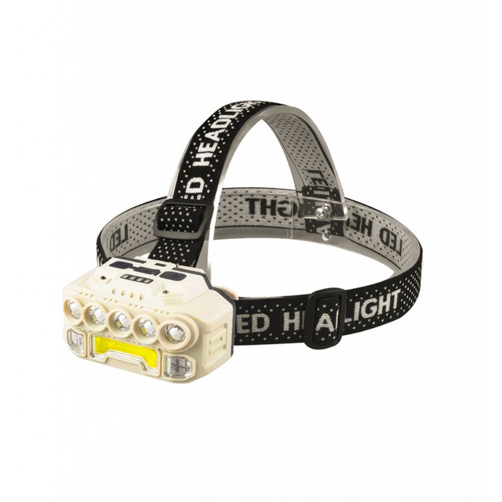 Фонарик налобный на аккумуляторе имеет светлый пластиковый корпус, крепкий.