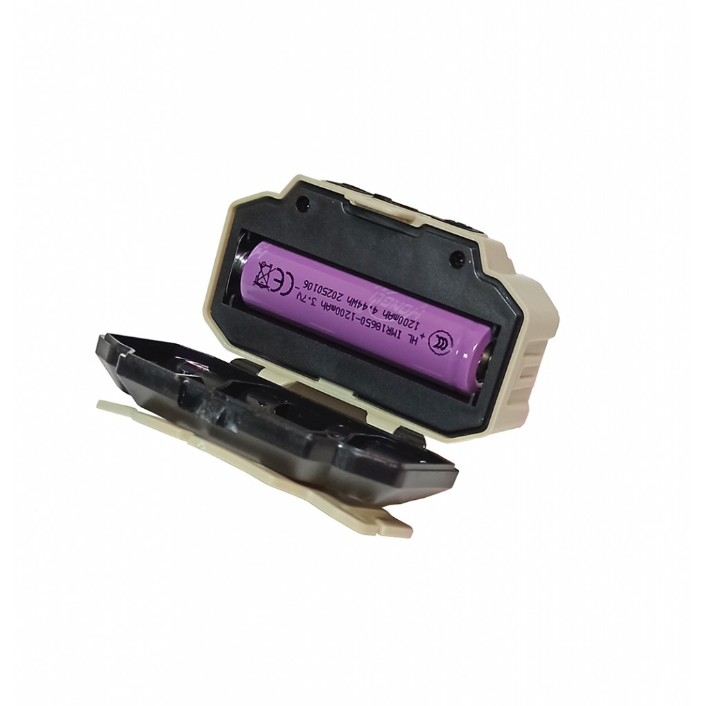 Фонарь налобный HX-817S имеет сенсор движения, включается сенсор кнопкой слева и при этом горит только 1 средняя лампочка. Питается налобный фонарик от съёмного аккумулятора 18650 ёмкостью 1200 мАч, заряжается от USB Type C, есть индикатор заряда.