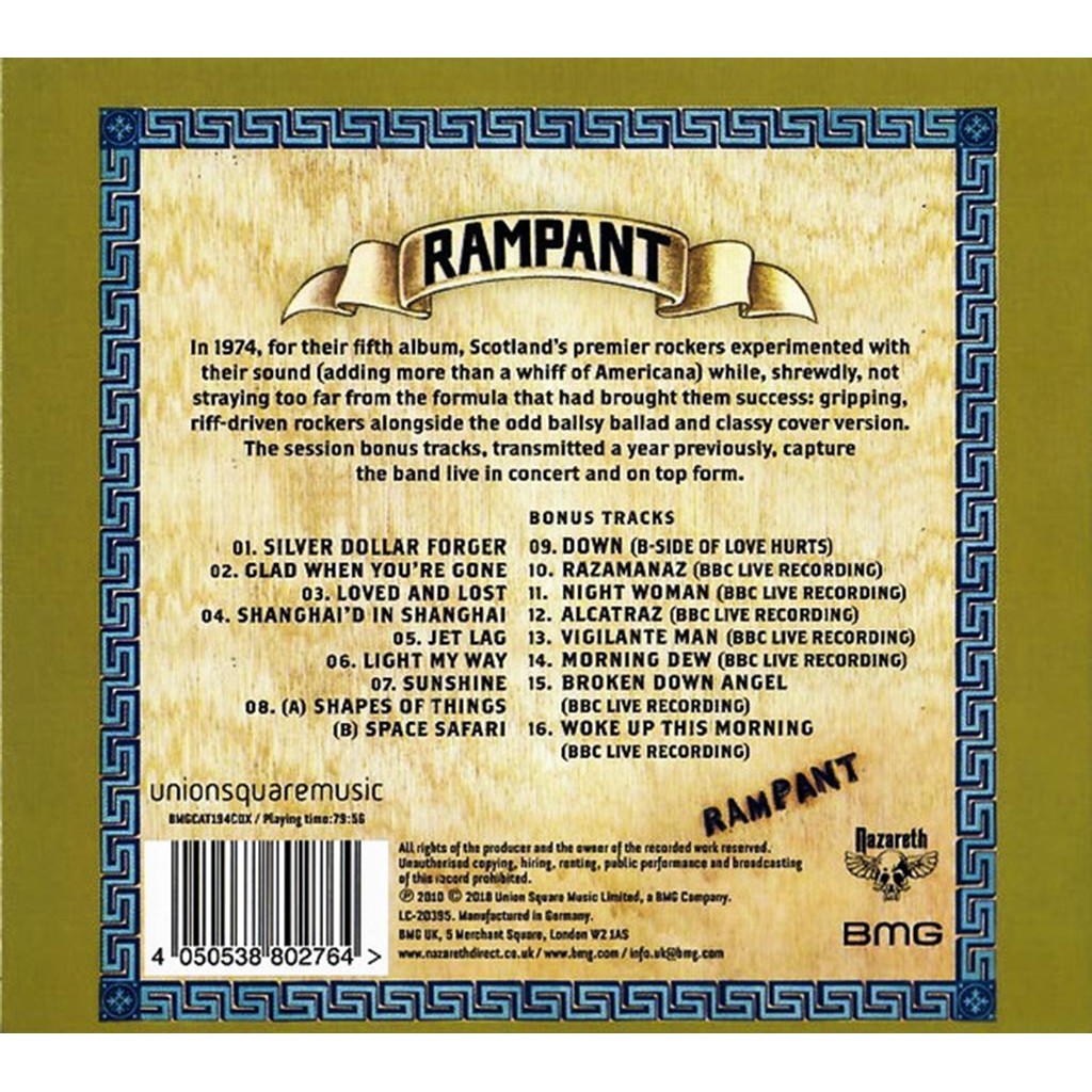 Продюсером снова выступил Роджер Гловер (Deep Purple), благодаря чему пластинка получила насыщенный, живой звук и продуманное построение композиций. “Rampant” стал переходным альбомом для Nazareth: группа смело экспериментировала со звуком, оставаясь верной духу 70-х и собственному стилю. Эта пластинка подчёркивает зрелость коллектива и его стремление развиваться, не теряя рок-н-ролльного напора и искренности.