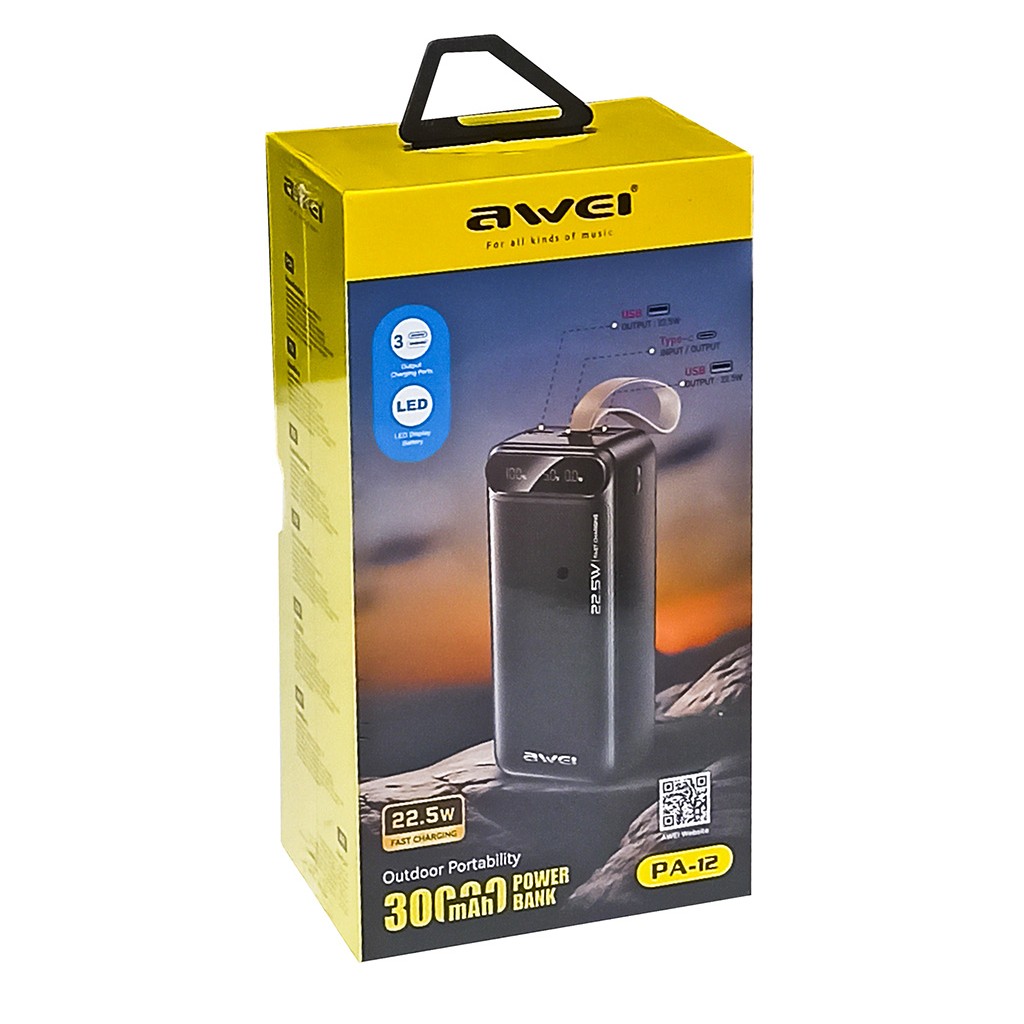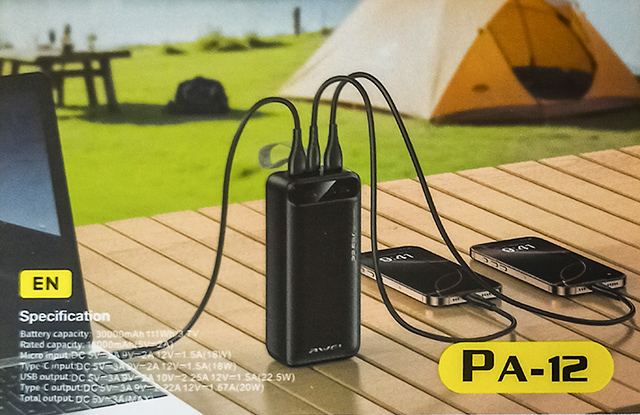 Теги: Power Bank, внешний аккумулятор, AWEI PA12, 30000 mAh, 30000mah, 22.5W, быстрая зарядка, Fast Charge, Quick Charge, QC 3.0, PD, USB, USB-A, USB-C, зарядка смартфона, зарядка планшета, портативный аккумулятор,