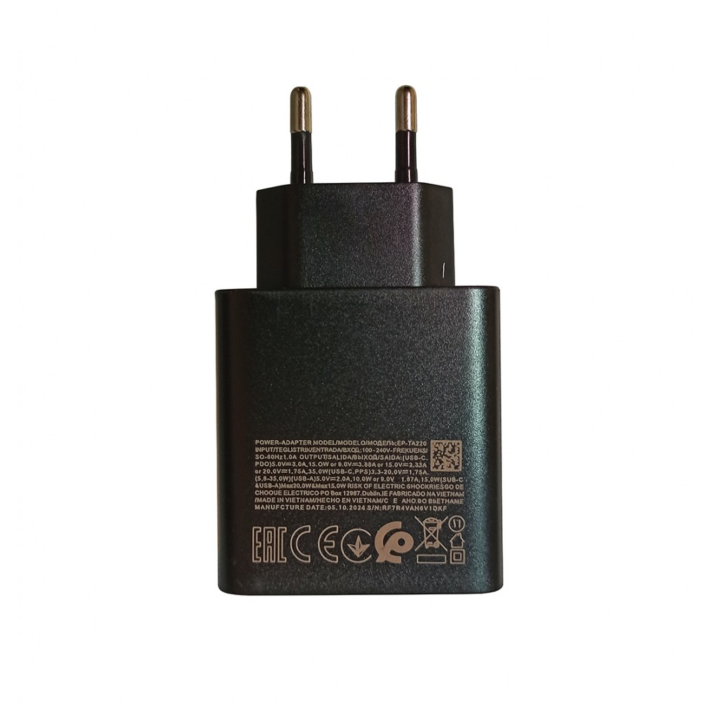 Зарядное Power Adapter EP-TA220 35W - зарядка для телефона, планшета или другого гаджета, с быстрой зарядкой. блок питания имеет разьём USB и Type C, поддерживает все основные современные технологии быстрой зарядки. Умный контроллер, установленный в адаптере EP-TA220 35W, синхронизируется с подключенным гаджетом и подбирает соответствующую технологию зарядки - поэтому зарядное может заряжать устройства на 5V, 9V, 12V, 15V и 20V.